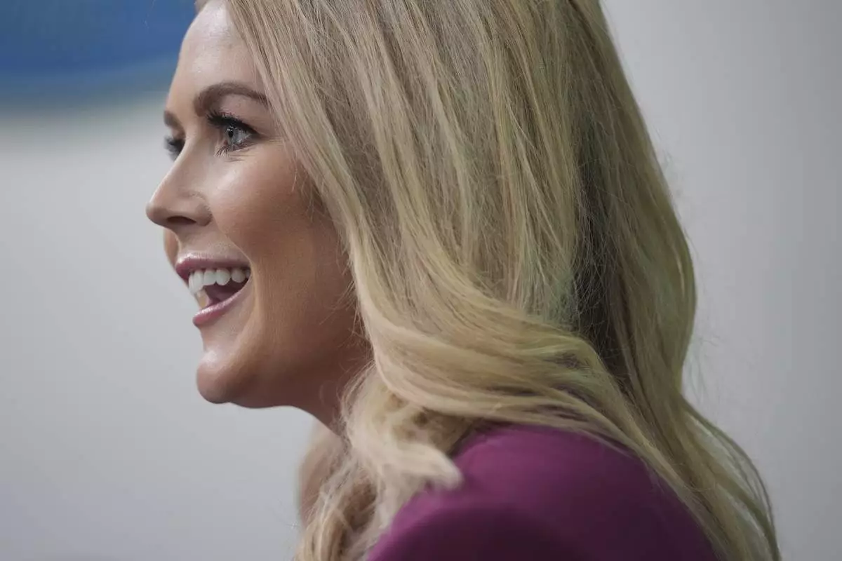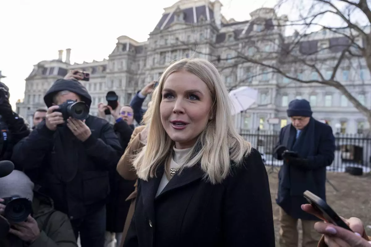 White House press secretary Karoline Leavitt arrives to speak with reporters in the James Brady Press Briefing Room at the White House, Tuesday, Jan. 28, 2025, in Washington. (AP Photo/Alex Brandon)