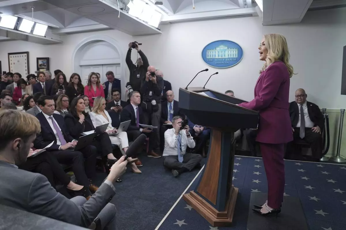 WASHINGTON (AP) — White House press secretary Karoline Leavitt made her debut in the briefing room on Tuesday and promised to speak frequently with the news media and open up the briefing room to podcasters and social media influencers.