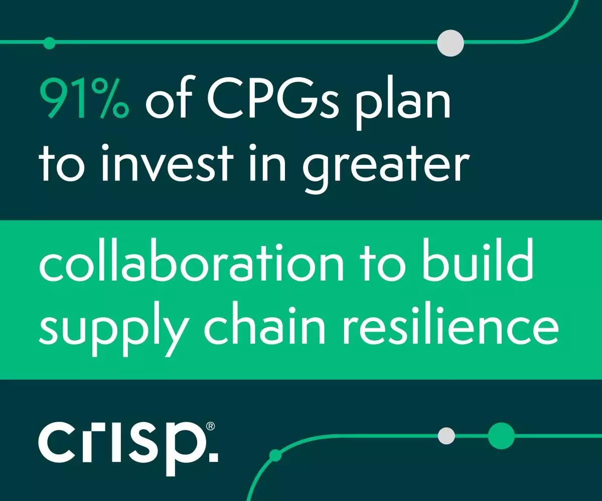 91% of CPGs plan to invest in greater collaboration to build supply chain resilience, according to Crisp and CGT Magazine research. (Graphic: Business Wire)