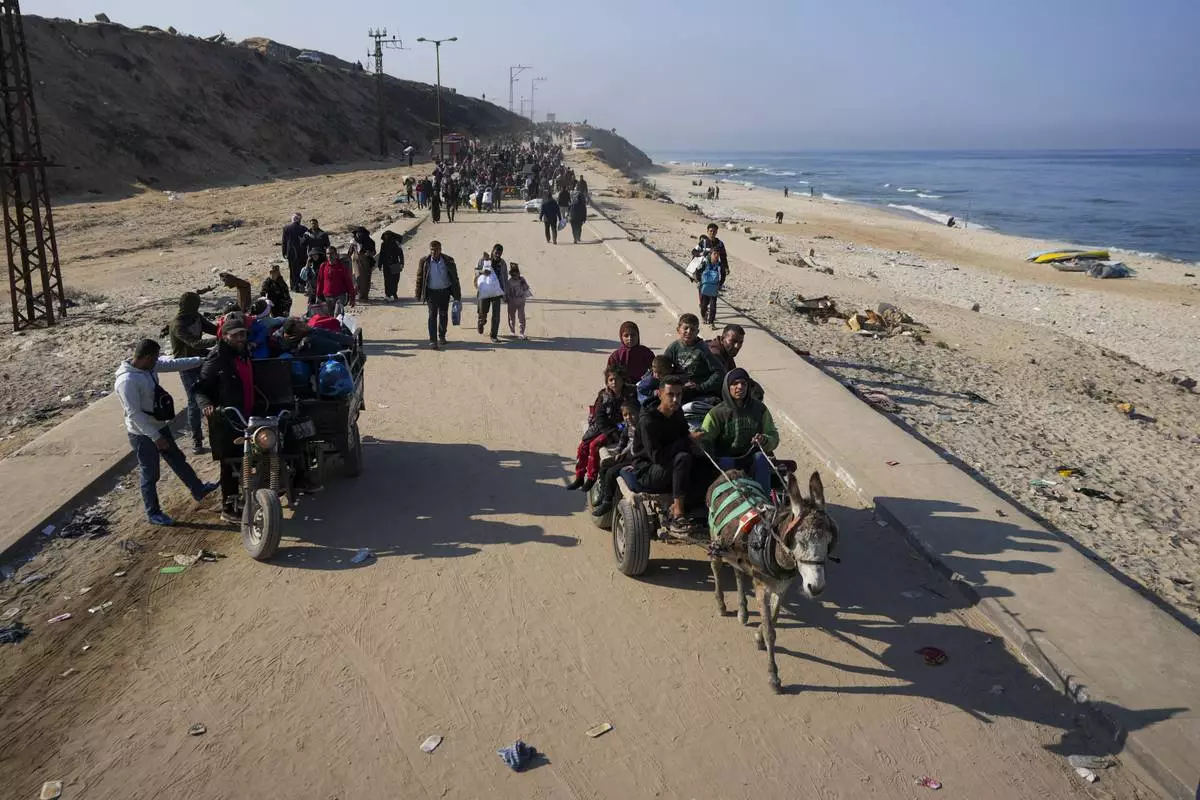 GAZA CITY, Gaza Strip — For a third straight day, thousands of Palestinians in southern Gaza trekked by foot, motorbike and animal-drawn carts back to their homes in the war-ravaged north after Israeli forces withdrew from the two main roads earlier this week.