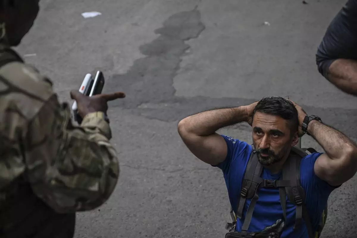 M23 rebels release captured Romanian mercenaries, who were fighting alongside Democratic Republic of Congo army (FRDC), at Gisenyi border point in Congo, Wednesday, Jan. 29, 2025, after the M23 rebels advanced into eastern Congo's capital Goma. (AP Photo/Brian Inganga)
