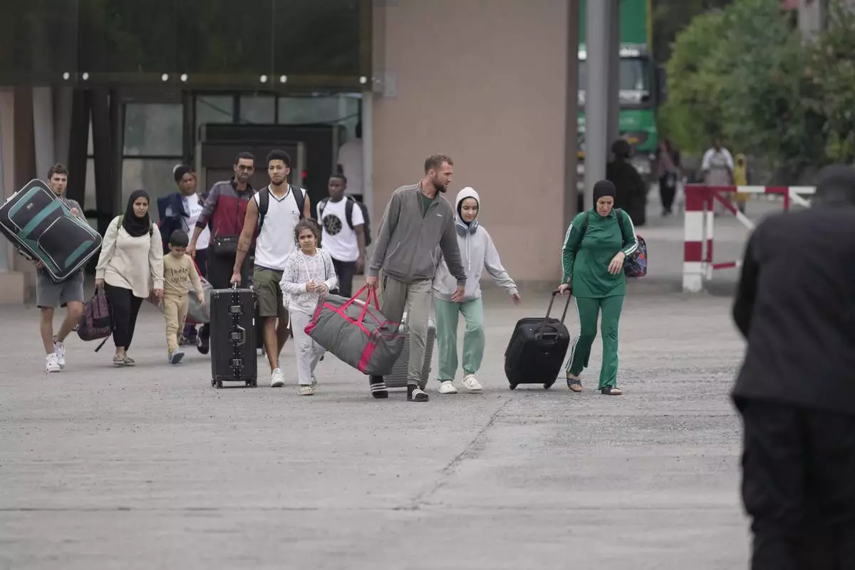 People who crossed from Congo disembark a truck in Gyseny, Rwanda, Tuesday, Jan. 28, 2025, following M23 rebels' advances into eastern Congo's capital Goma. (AP Photo/Yuhi Irakiza)