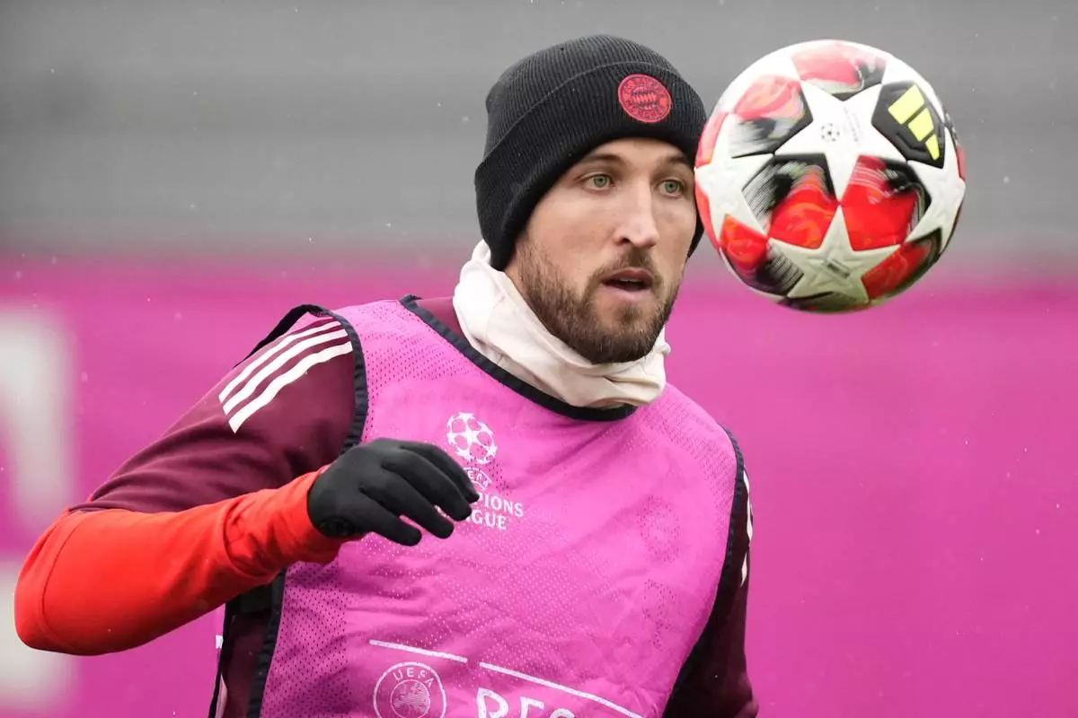 Bayern's Harry Kane controls a ball during a training session in Munich, Germany, Tuesday, Jan. 28, 2025, ahead of the Champions League opening phase soccer match between FC Bayern and Slovan Bratislava. (AP Photo/Matthias Schrader)
