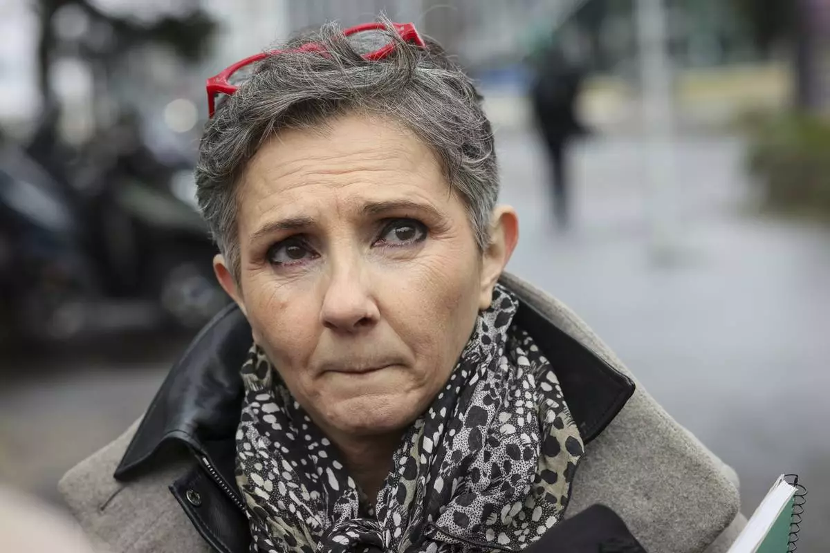 Dominique Pelicot 's lawyer Beatrice Zavarro answers reporters outside the Nanterre courthouse where the convicted rapist who horrified France by drugging his then wife, Gisele Pélicot, so other men could rape her, is now caught up in other cases, Thursday, Jan. 30, 2025 in Nanterre, outside Paris. (AP Photo/Thomas Padilla)