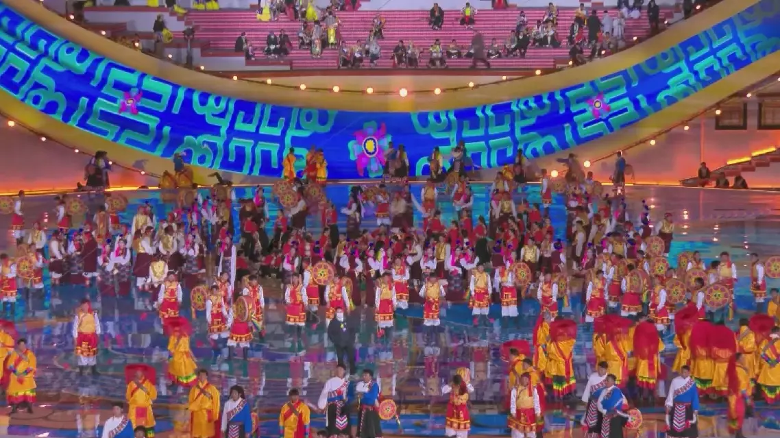 The performance on the plateau venue also accentuated the visual effects of ethnic culture and the folk arts of Xizang, highlighting colorful song singing and dance performance, and intangible cultural heritage.