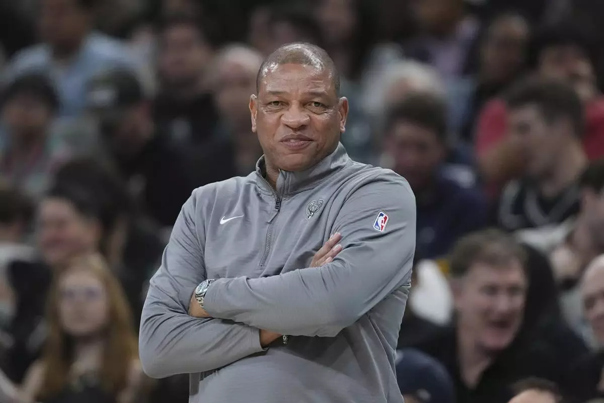 Milwaukee Bucks head coach Doc Rivers looks on from the sideline during the first half of an NBA basketball game against the San Antonio Spurs in San Antonio, Friday, Jan. 31, 2025. (AP Photo/Eric Gay)
