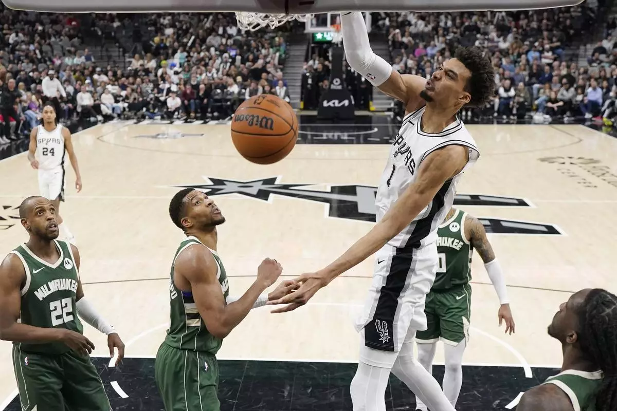 Wembanyama banked in a 34-foot 3-pointer that hit the backboard, bounced off the front of the rim, hit the backboard again and dropped in with 7:18 remaining in the third quarter. The 3-pointer drew loud gasps and cheers from the fans and left Milwaukee coach Doc Rivers with his arms raised in puzzlement.