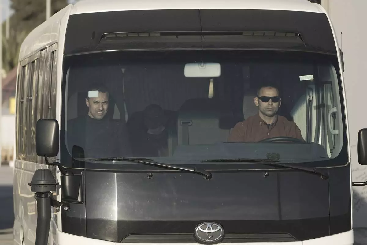 Palestinian prisoners cross at Rafah border crossing, Egypt, Saturday, Feb. 1, 2025. (AP Photo/Amr Nabil)