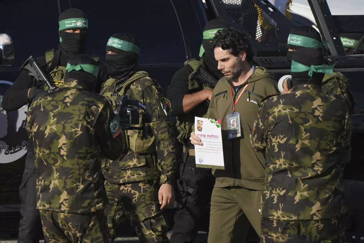 Militants handed Argentinian-Israeli Yarden Bibas and French-Israeli Ofer Kalderon to Red Cross officials in the southern city of Khan Younis, while American-Israeli hostage Keith Siegel, looking pale and thin, was handed over in Gaza City.