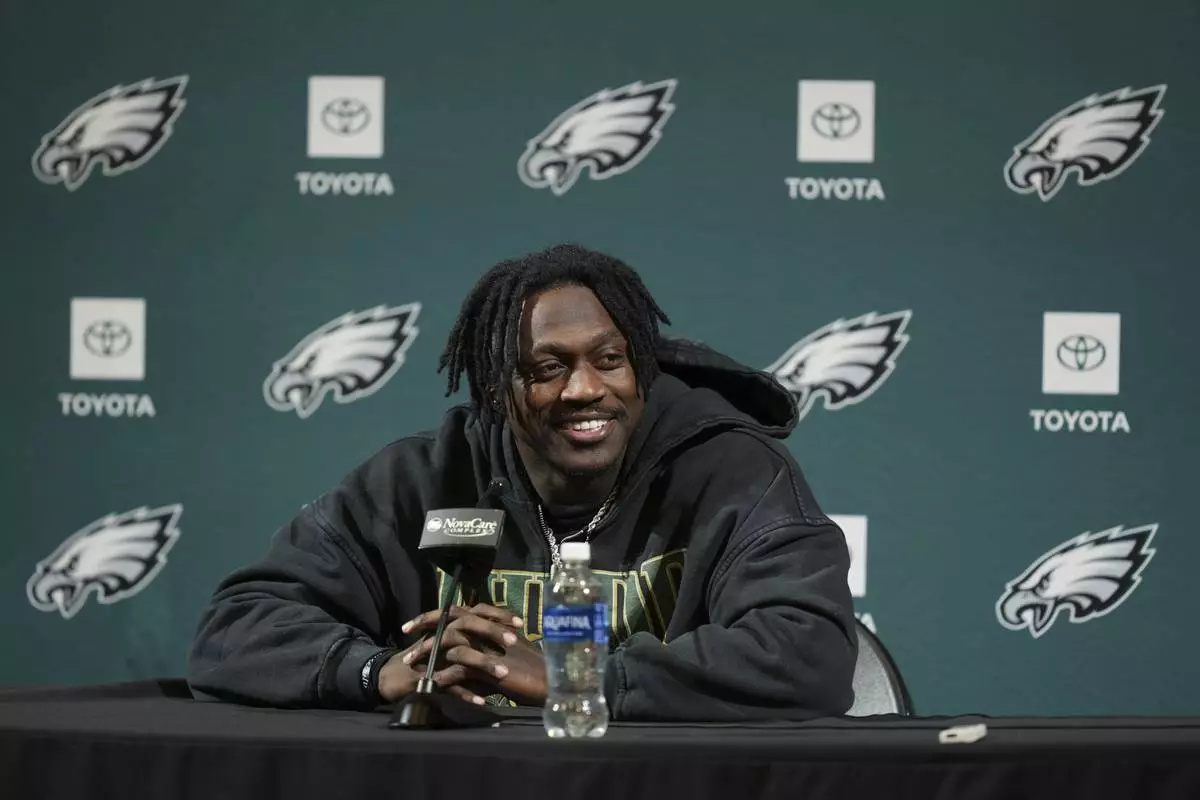 Philadelphia Eagles' A.J. Brown speaks during an NFL football news conference in Philadelphia, Thursday, Jan. 30, 2025, ahead of Super Bowl LIX against the Kansas City Chiefs. (AP Photo/Matt Rourke)