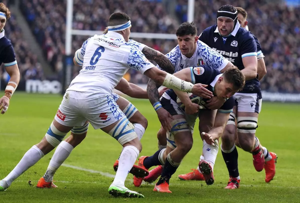 EDINBURGH, Scotland (AP) — Moments of brilliance by a backline shorn of its best player spared Scotland from a second straight humbling by Italy in Six Nations rugby on Saturday.