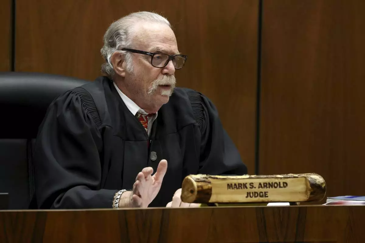 Judge Mark S. Arnold speaks to attorneys before opening remarks in the trial of Rakim Mayers, aka A$AP Rocky, at the Clara Shortridge Foltz Criminal Justice Center in downtown Los Angeles, Friday, Jan. 24, 2025. (Genaro Molina/Los Angeles Times via AP, Pool)