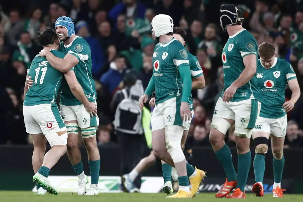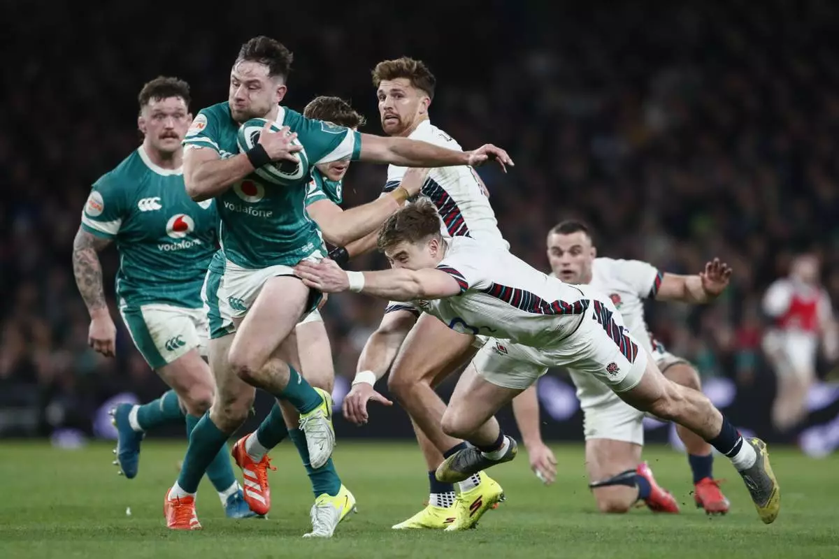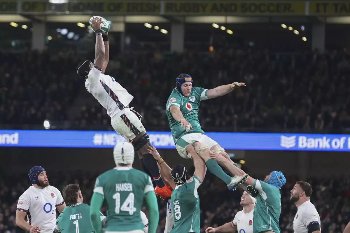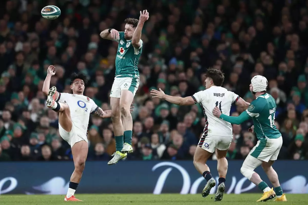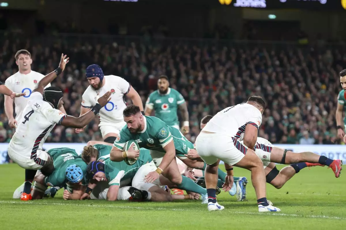 DUBLIN (AP) — Ireland got off to a five-point start to its bid for an unprecedented third straight outright Six Nations rugby title, overpowering England in a second-half recovery to rack up a 27-22 victory in Dublin on Saturday.