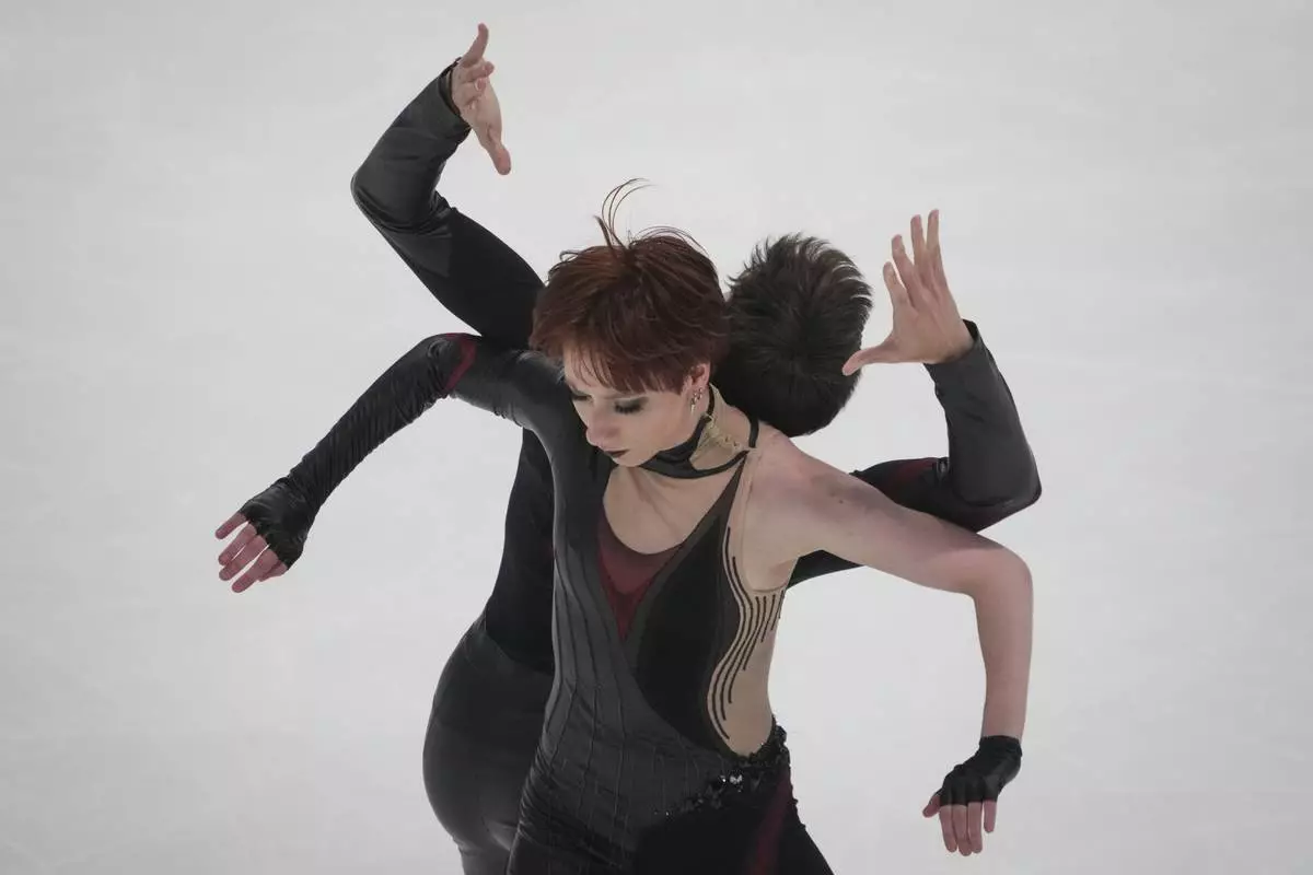 Evgeniia Lopareva and Geoffrey Brissaud of France perform during the ice dance free dance competition at the ISU European Figure Skating Championships in Tallinn, Estonia, Saturday, Feb. 1, 2025. (AP Photo/Sergei Grits)