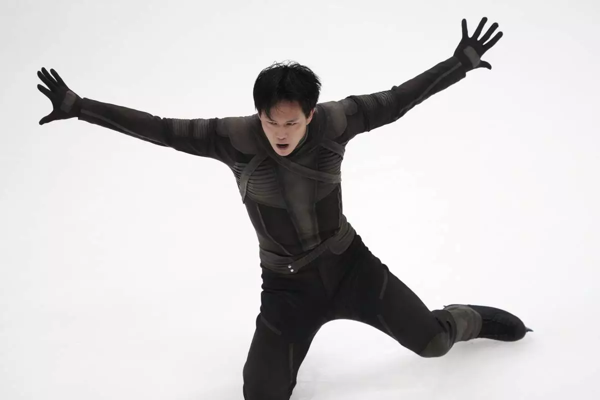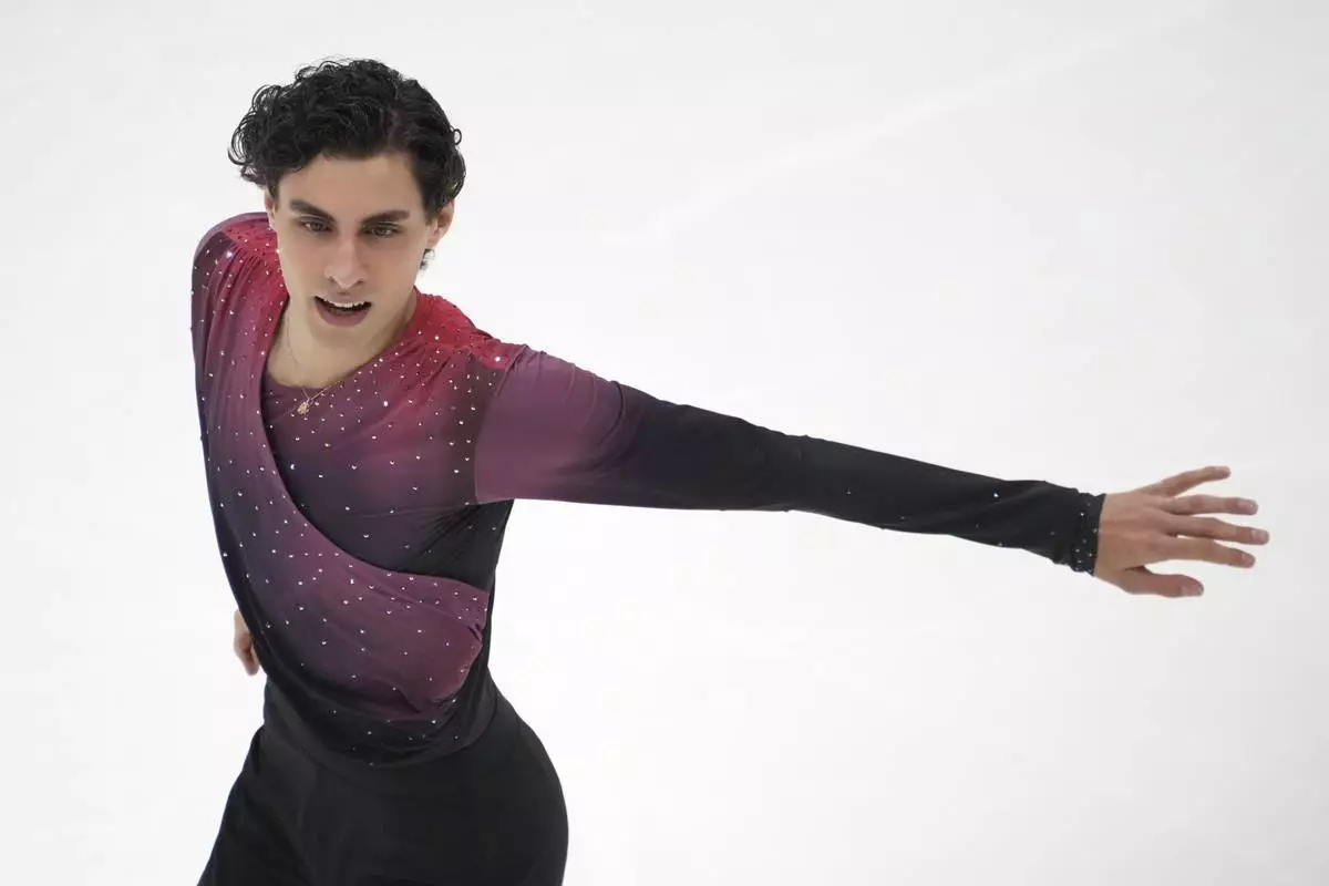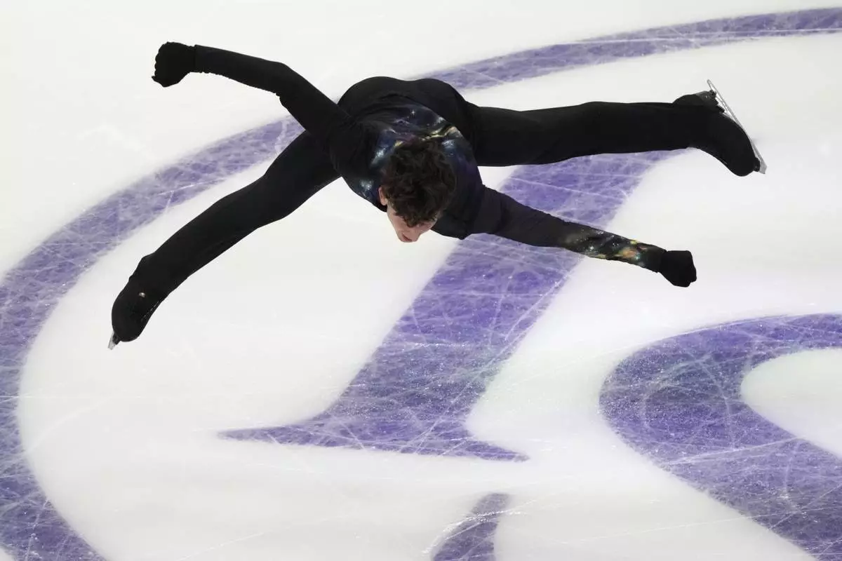 Adam Siao Him Fa of France performs during the men's free skating program at the ISU European Figure Skating Championships in Tallinn, Estonia, Saturday, Feb. 1, 2025. (AP Photo/Sergei Grits)