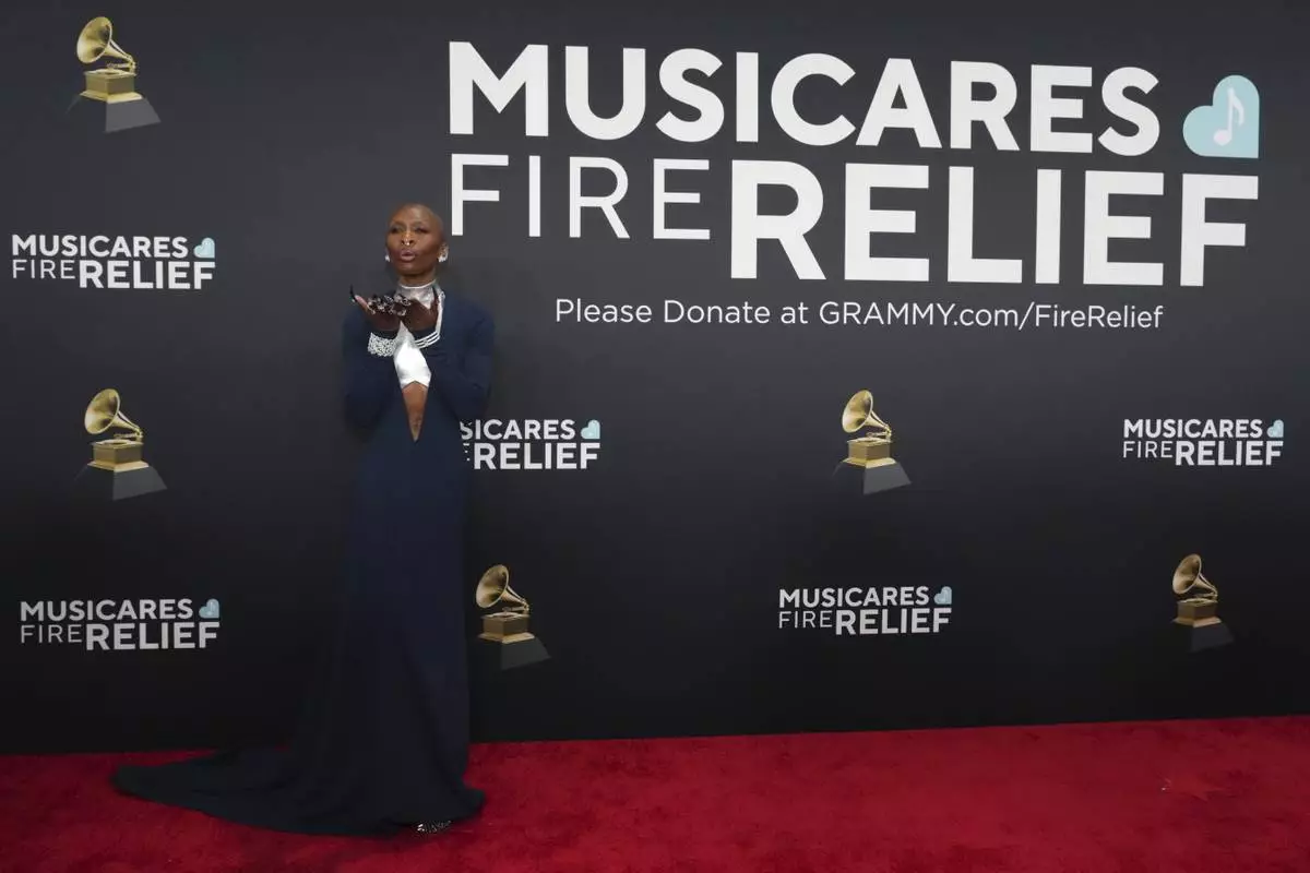 Cynthia Erivo arrives at the 67th annual Grammy Awards on Sunday, Feb. 2, 2025, in Los Angeles. (Photo by Jordan Strauss/Invision/AP)
