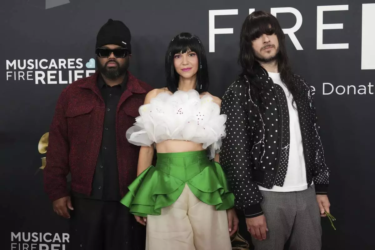 Donald Johnson Jr., from left, Laura Lee, and Mark Speer of 'Khrunangbin' arrive at the 67th annual Grammy Awards on Sunday, Feb. 2, 2025, in Los Angeles. (Photo by Jordan Strauss/Invision/AP)
