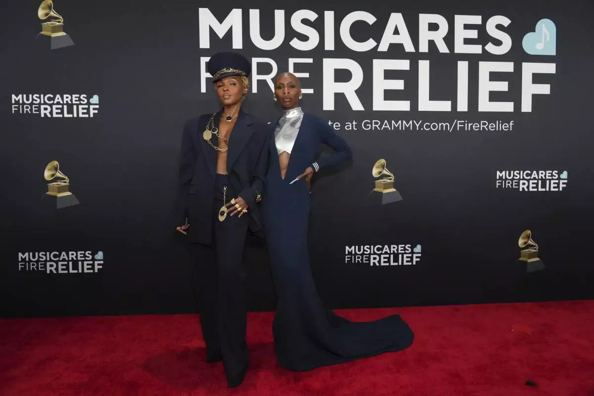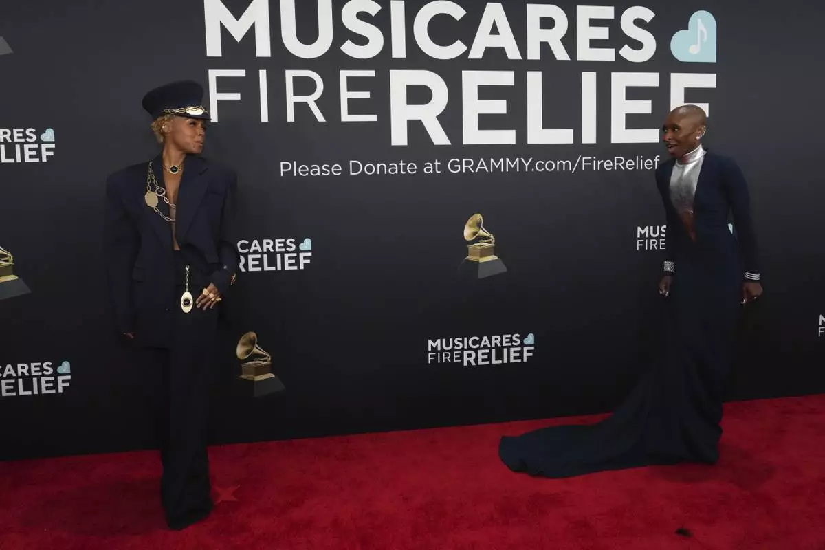 Janelle Monae, left, and Cynthia Erivo arrive at the 67th annual Grammy Awards on Sunday, Feb. 2, 2025, in Los Angeles. (Photo by Jordan Strauss/Invision/AP)