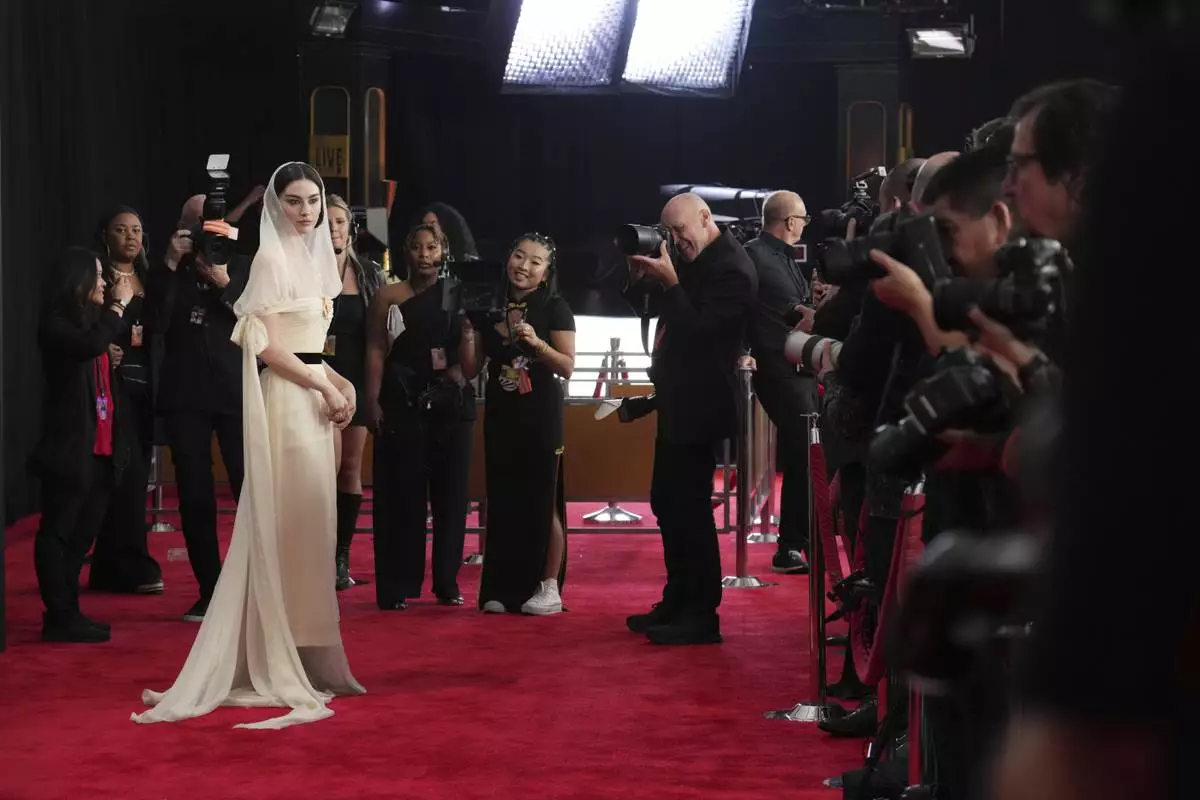 Gracie Abrams arrives at the 67th annual Grammy Awards on Sunday, Feb. 2, 2025, in Los Angeles. (Photo by Jordan Strauss/Invision/AP)