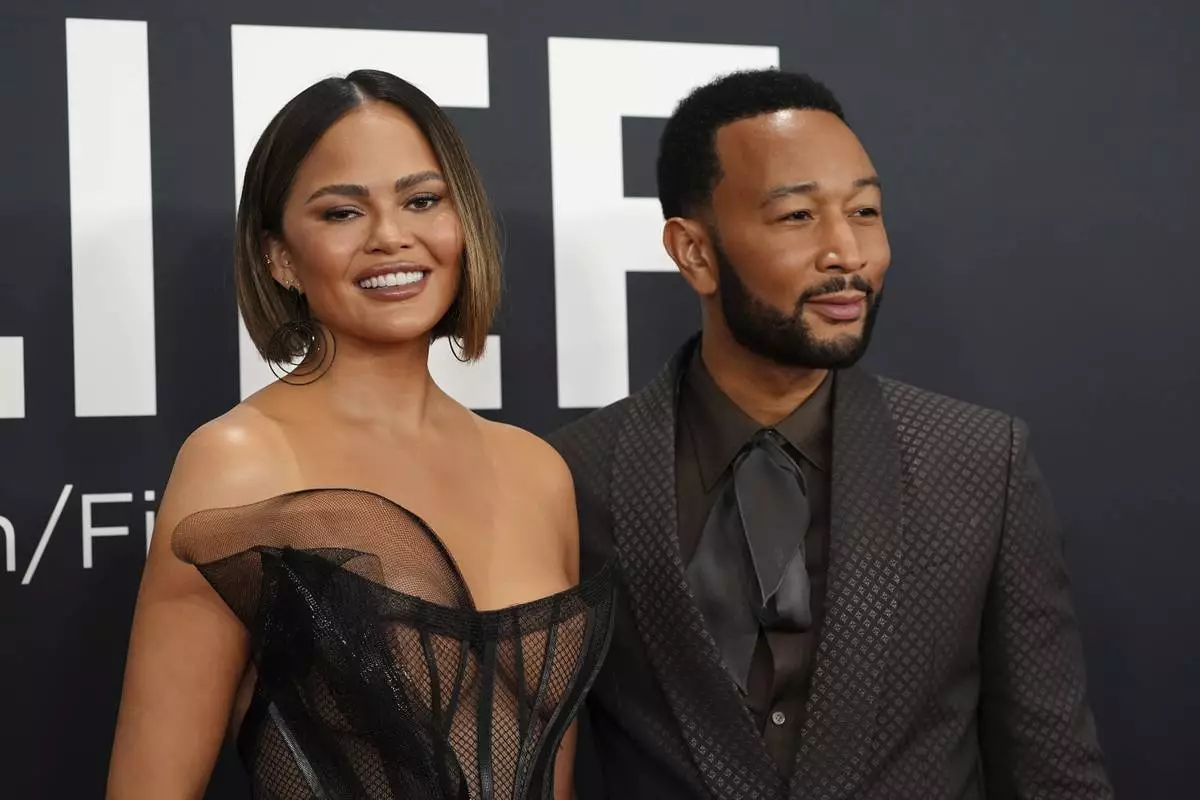 Chrissy Teigen, left, and John Legend arrive at the 67th annual Grammy Awards on Sunday, Feb. 2, 2025, in Los Angeles. (Photo by Jordan Strauss/Invision/AP)