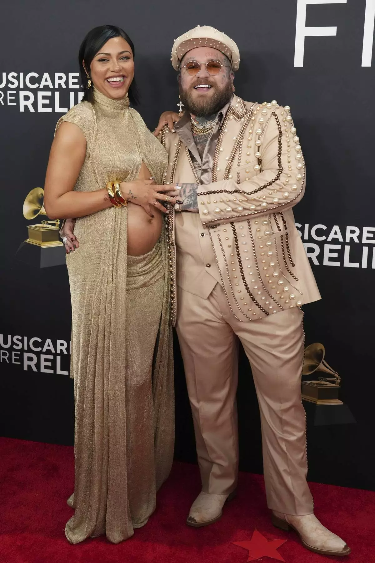 Raiche Wright, left, and Teddy Swims arrive at the 67th annual Grammy Awards on Sunday, Feb. 2, 2025, in Los Angeles. (Photo by Jordan Strauss/Invision/AP)