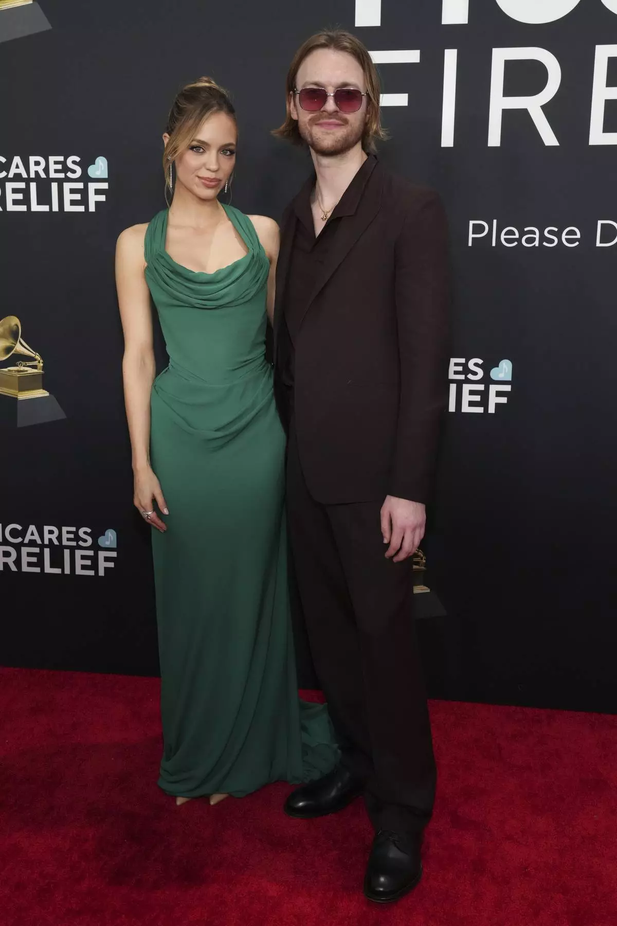 Claudia Sulewski, left, and Finneas arrive at the 67th annual Grammy Awards on Sunday, Feb. 2, 2025, in Los Angeles. (Photo by Jordan Strauss/Invision/AP)