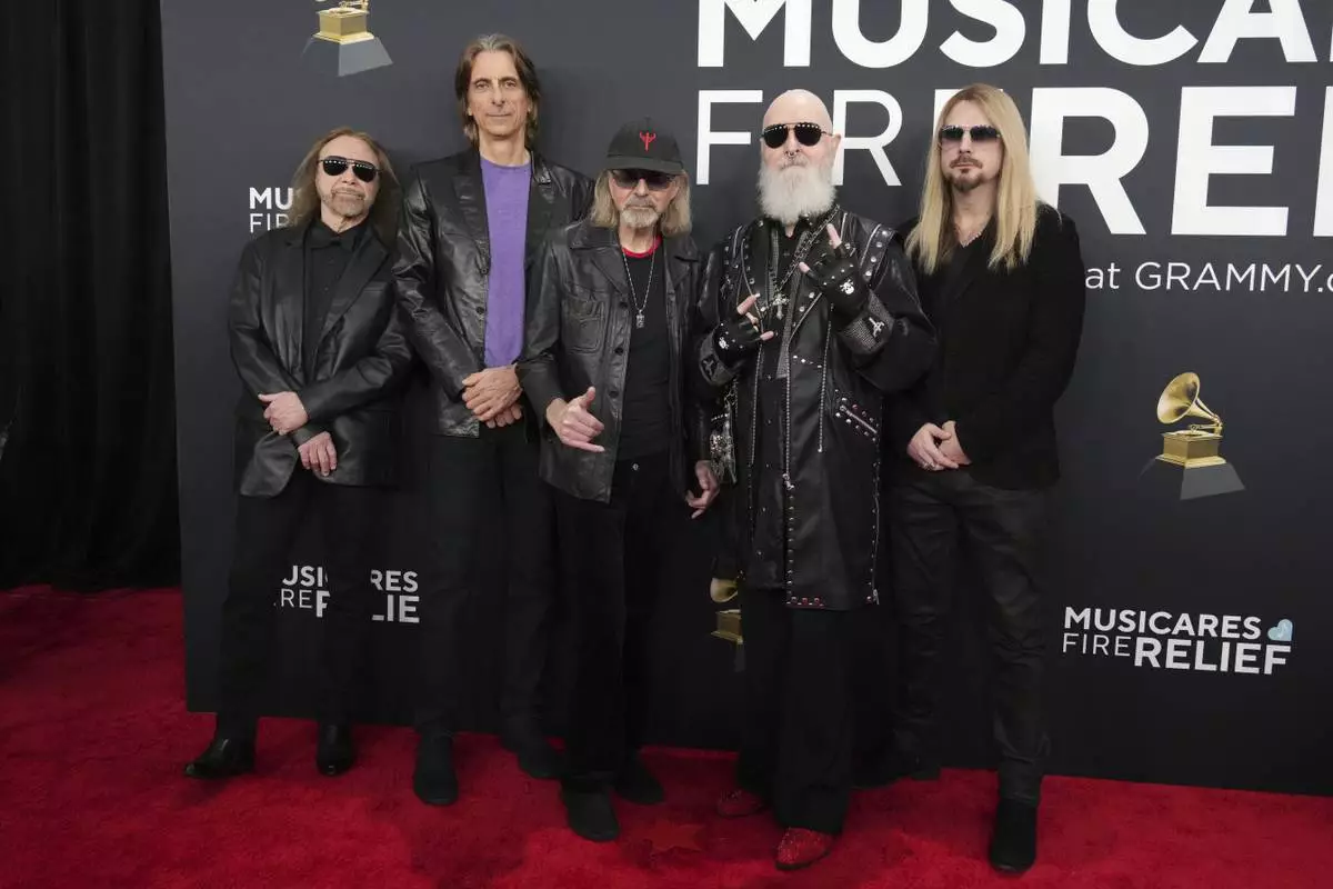 Judas Priest arrives at the 67th annual Grammy Awards on Sunday, Feb. 2, 2025, in Los Angeles. (Photo by Jordan Strauss/Invision/AP)