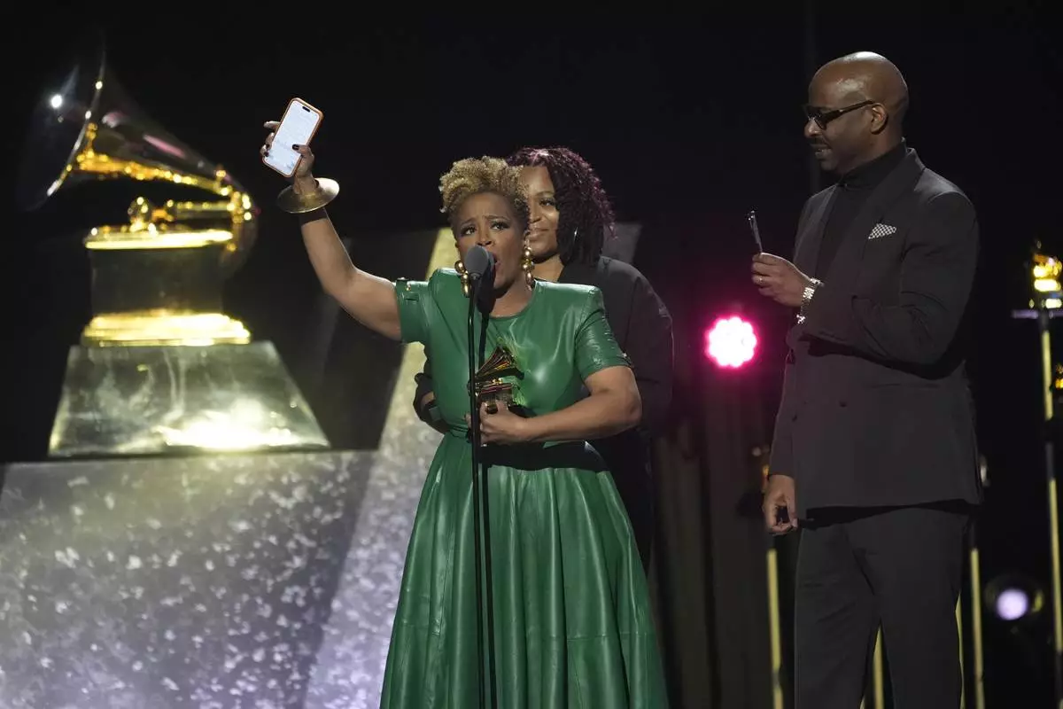 Avery*Sunshine accepts the award for best progressive r&b album for "So Glad to Know You" during the 67th annual Grammy Awards on Sunday, Feb. 2, 2025, in Los Angeles. (AP Photo/Chris Pizzello)