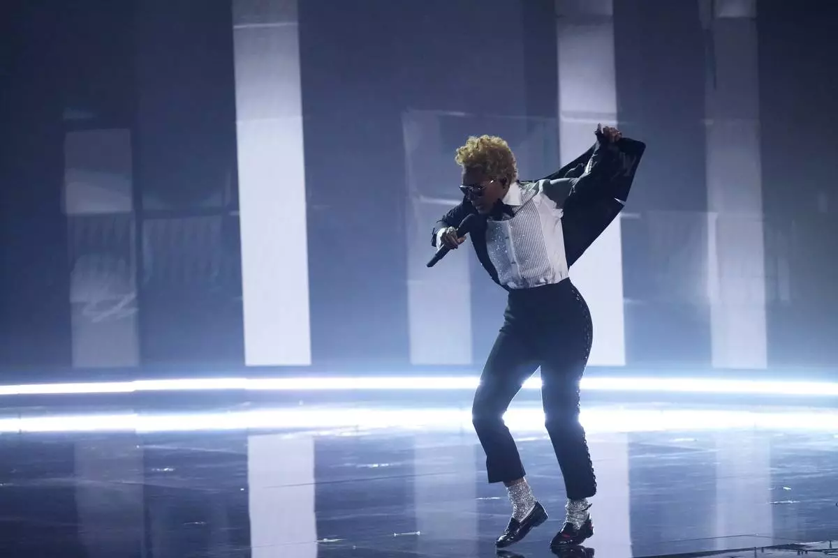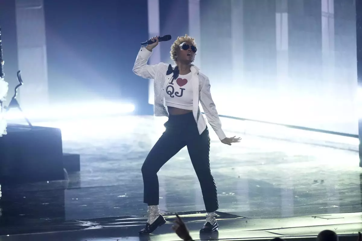 Janelle Monae performs "Don't Stop 'til You Get Enough" as a tribute to Quincy Jones during the 67th annual Grammy Awards on Sunday, Feb. 2, 2025, in Los Angeles. (AP Photo/Chris Pizzello)