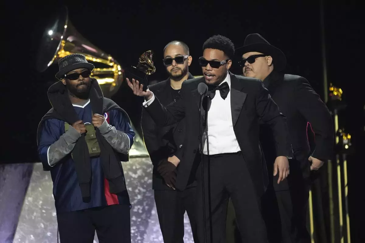 Tank and The Bangas accept the award for best spoken word poetry album for "The Heart, The Mind, The Soul" during the 67th annual Grammy Awards on Sunday, Feb. 2, 2025, in Los Angeles. (AP Photo/Chris Pizzello)