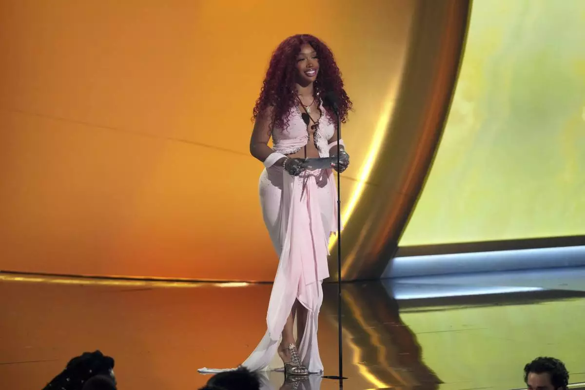 SZA presents the award for best pop duo/group performance during the 67th annual Grammy Awards on Sunday, Feb. 2, 2025, in Los Angeles. (AP Photo/Chris Pizzello)