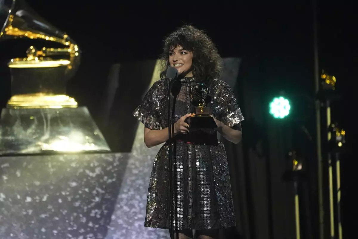 Sierra Ferrell accepts the award for best american roots performance for "Lighthouse" during the 67th annual Grammy Awards on Sunday, Feb. 2, 2025, in Los Angeles. (AP Photo/Chris Pizzello)