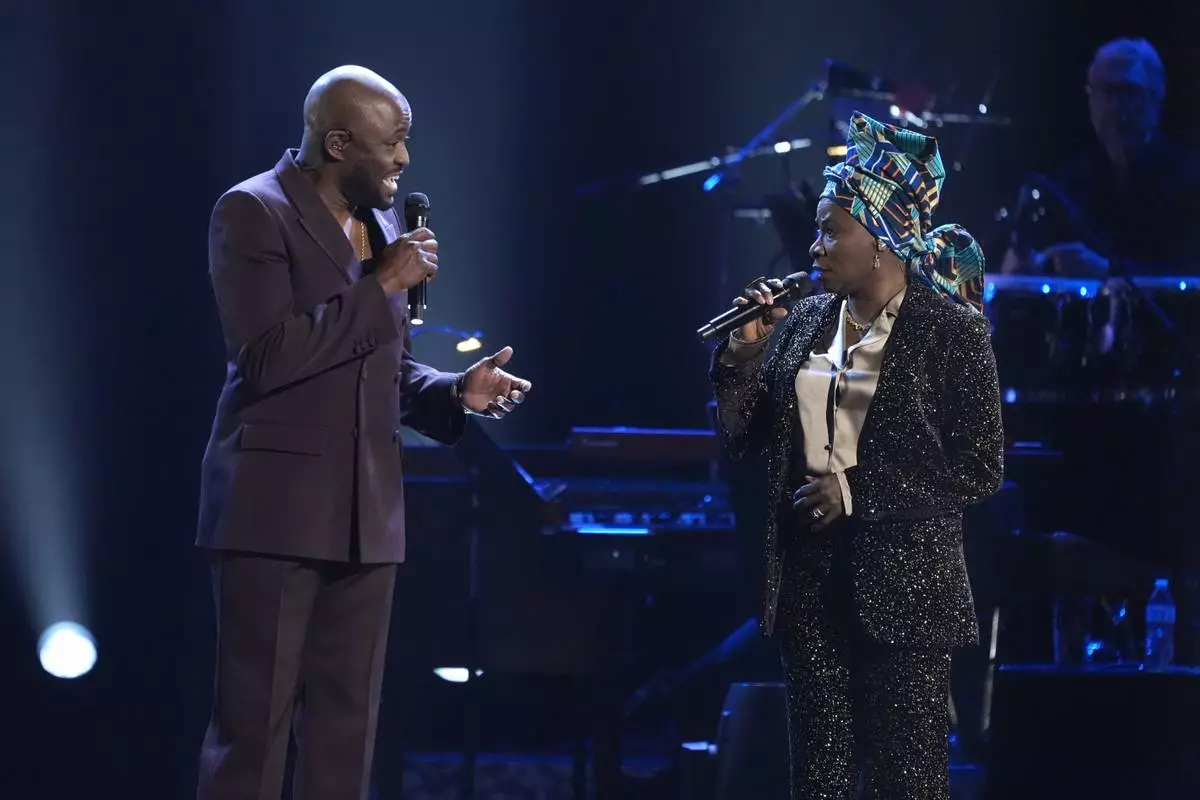 Wayne Brady, left, and Angelique Kidjo perform "Bridge Over Trouble Water" during the 67th annual Grammy Awards on Sunday, Feb. 2, 2025, in Los Angeles. (AP Photo/Chris Pizzello)