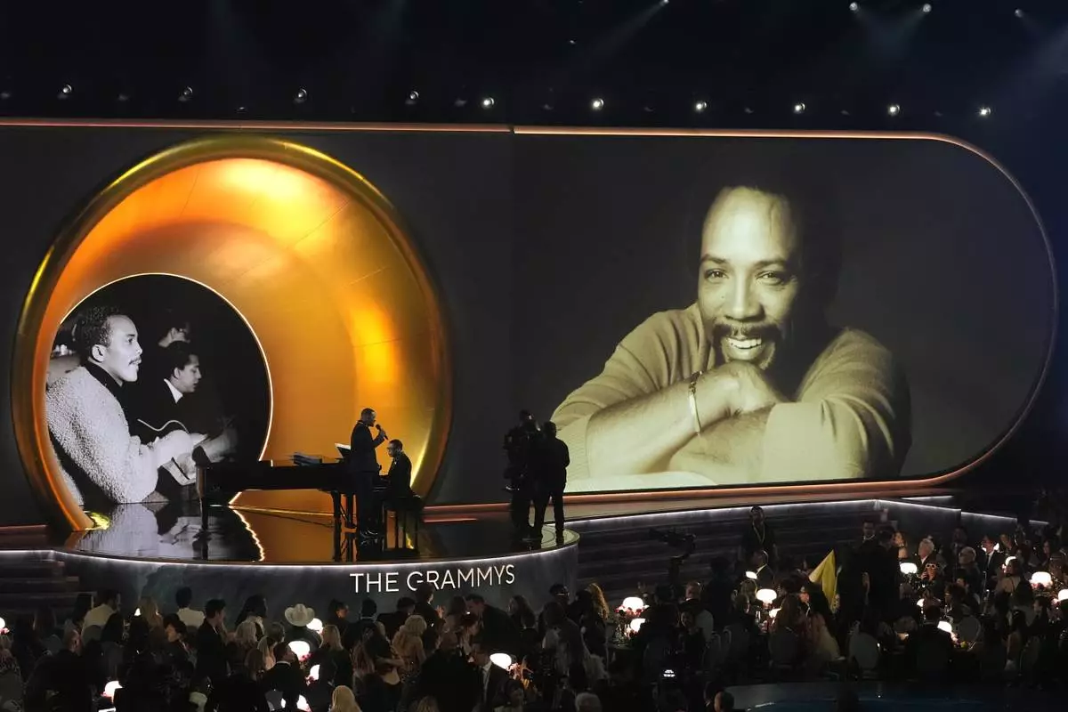 Will Smith speak about Quincy Jones during the 67th annual Grammy Awards on Sunday, Feb. 2, 2025, in Los Angeles. (AP Photo/Chris Pizzello)