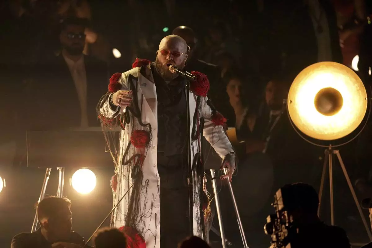 Scott Hoying performs "Bridge Over Troubled Water" during the 67th annual Grammy Awards on Sunday, Feb. 2, 2025, in Los Angeles. (AP Photo/Chris Pizzello)