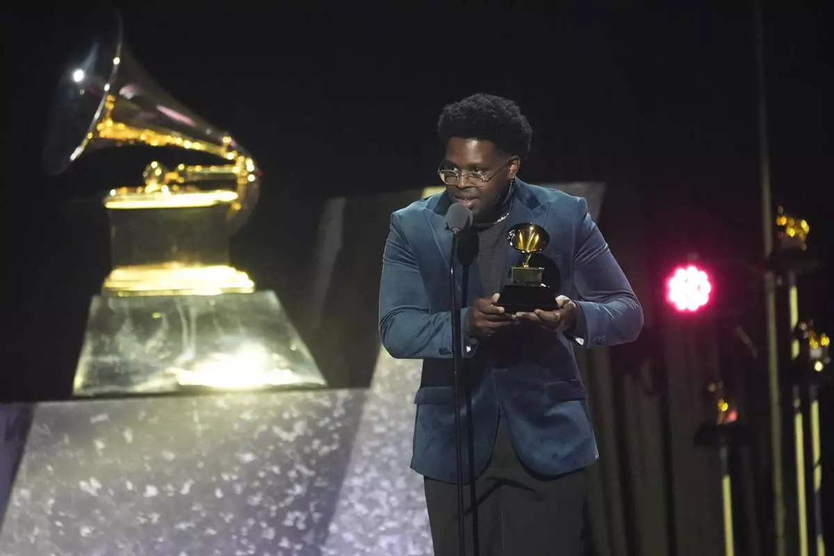 Cory Henry accepts the award for best roots gospel album for "Church" during the 67th annual Grammy Awards on Sunday, Feb. 2, 2025, in Los Angeles. (AP Photo/Chris Pizzello)
