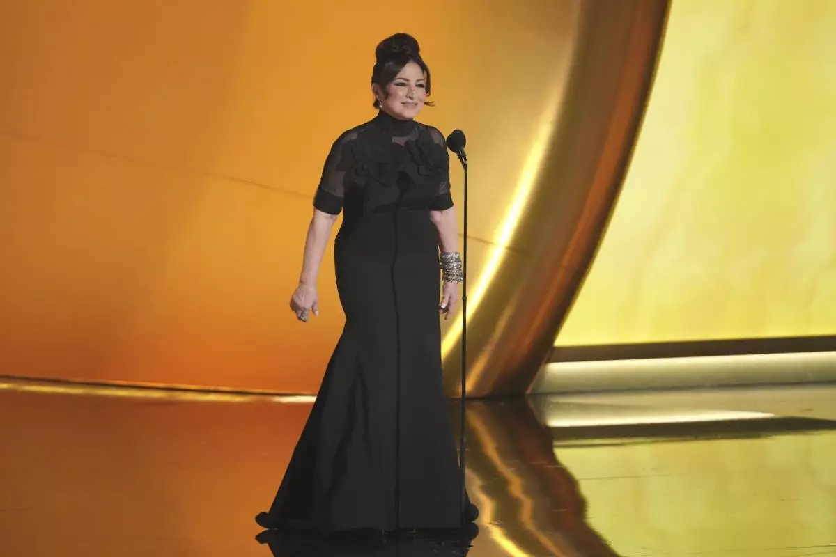 Gloria Estefan introduces a performance by Shakira during the 67th annual Grammy Awards on Sunday, Feb. 2, 2025, in Los Angeles. (AP Photo/Chris Pizzello)