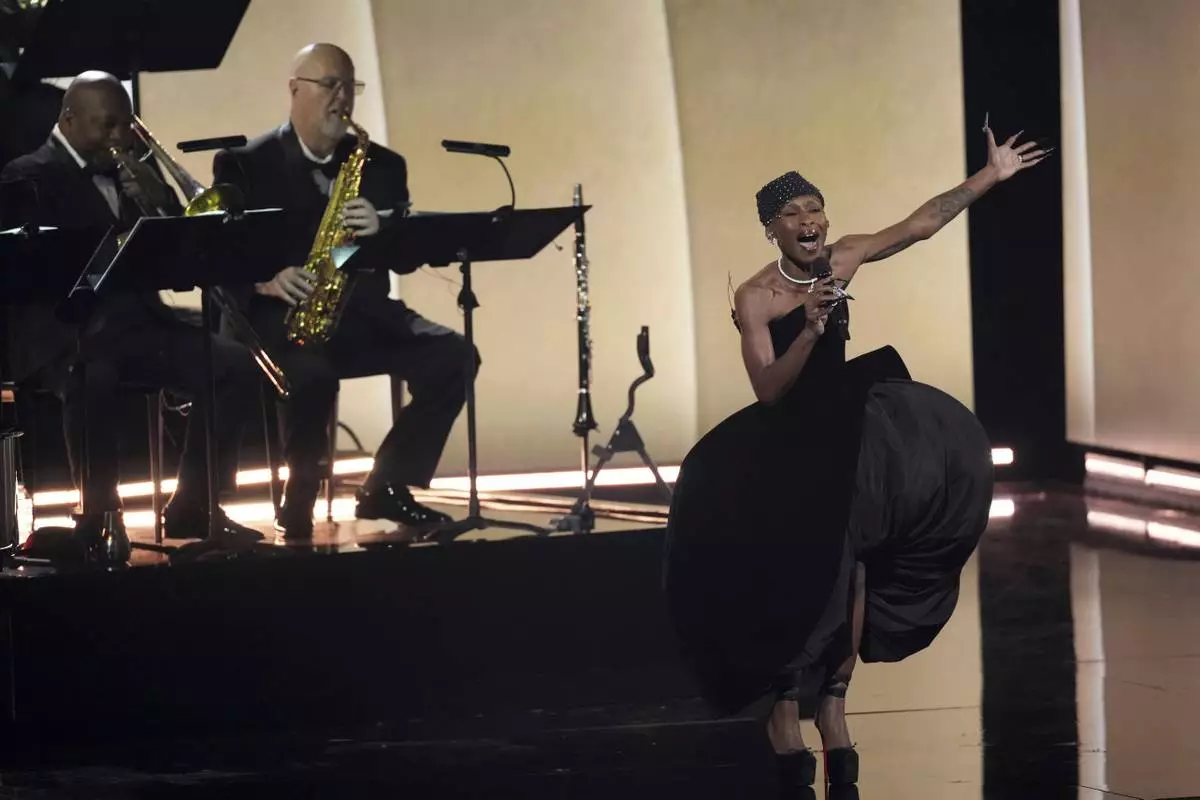 Cynthia Erivo performs 'In Other Words' during the 67th annual Grammy Awards on Sunday, Feb. 2, 2025, in Los Angeles. (AP Photo/Chris Pizzello)
