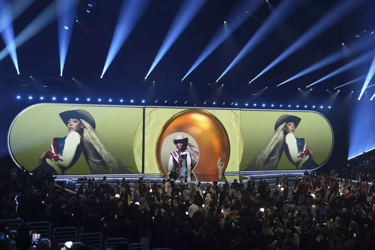 Beyonce accepts the award for best country album for "COWBOY CARTER" during the 67th annual Grammy Awards on Sunday, Feb. 2, 2025, in Los Angeles. (AP Photo/Chris Pizzello)