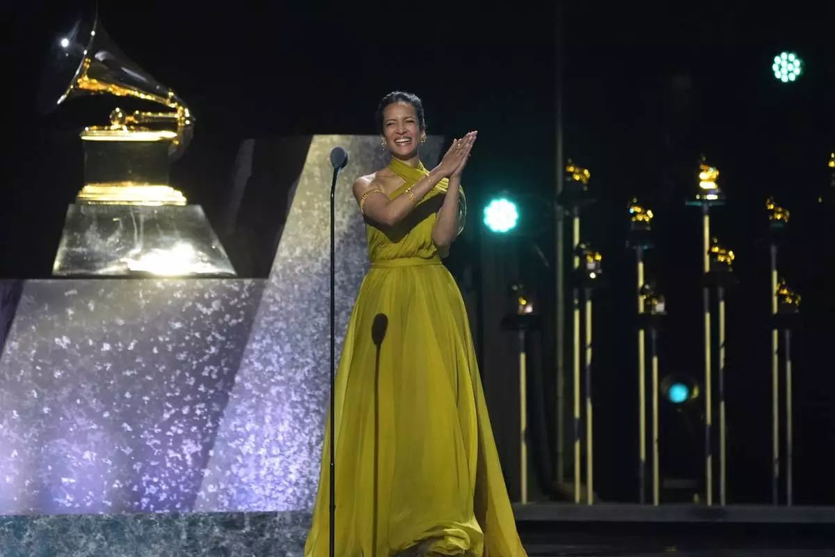 Anoushka Shankar speaks during the 67th annual Grammy Awards on Sunday, Feb. 2, 2025, in Los Angeles. (AP Photo/Chris Pizzello)
