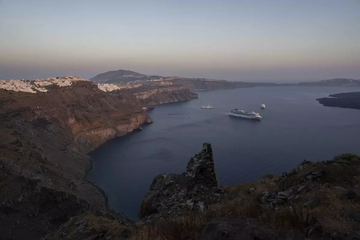 Crescent-shaped Santorini is a premier tourism destination with daily arrivals via commercial flights, ferries, and cruise ships. The island draws more than 3 million visitors annually to its whitewashed villages built along dramatic cliffs formed by a massive volcanic eruption — considered to be one of the largest in human history — more than 3,500 years ago.