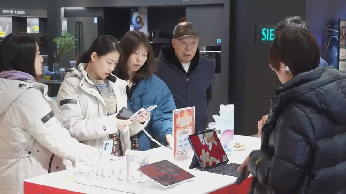 China's expanded trade-in subsidy policy for consumer goods, including mobile phones, tablets, and smartwatches, has fueled a surge in digital product and home appliance sales over the Spring Festival, as consumers take advantage of government incentives and retailer discounts.