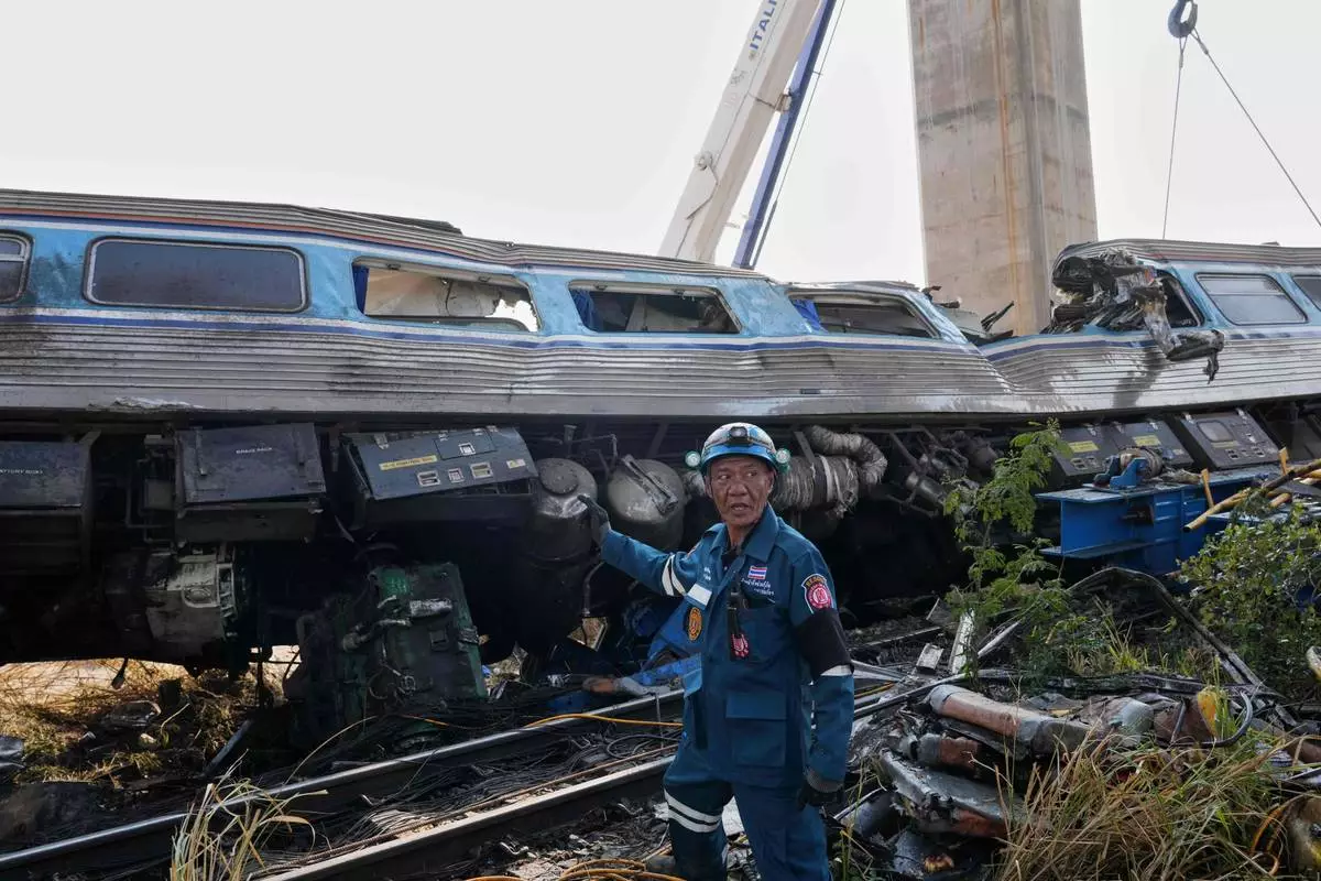 Rescue workers stood on top of overturned railway carriages, some of them with gaping holes torn on their sides, video from public broadcaster ThaiPBS showed. What appeared to be sections of the crane were scattered along the track.