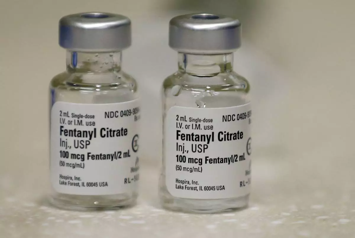 FILE - Small vials of fentanyl are shown in the inpatient pharmacy at the University of Utah Hospital in Salt Lake City, June 1, 2018. (AP Photo/Rick Bowmer, File)