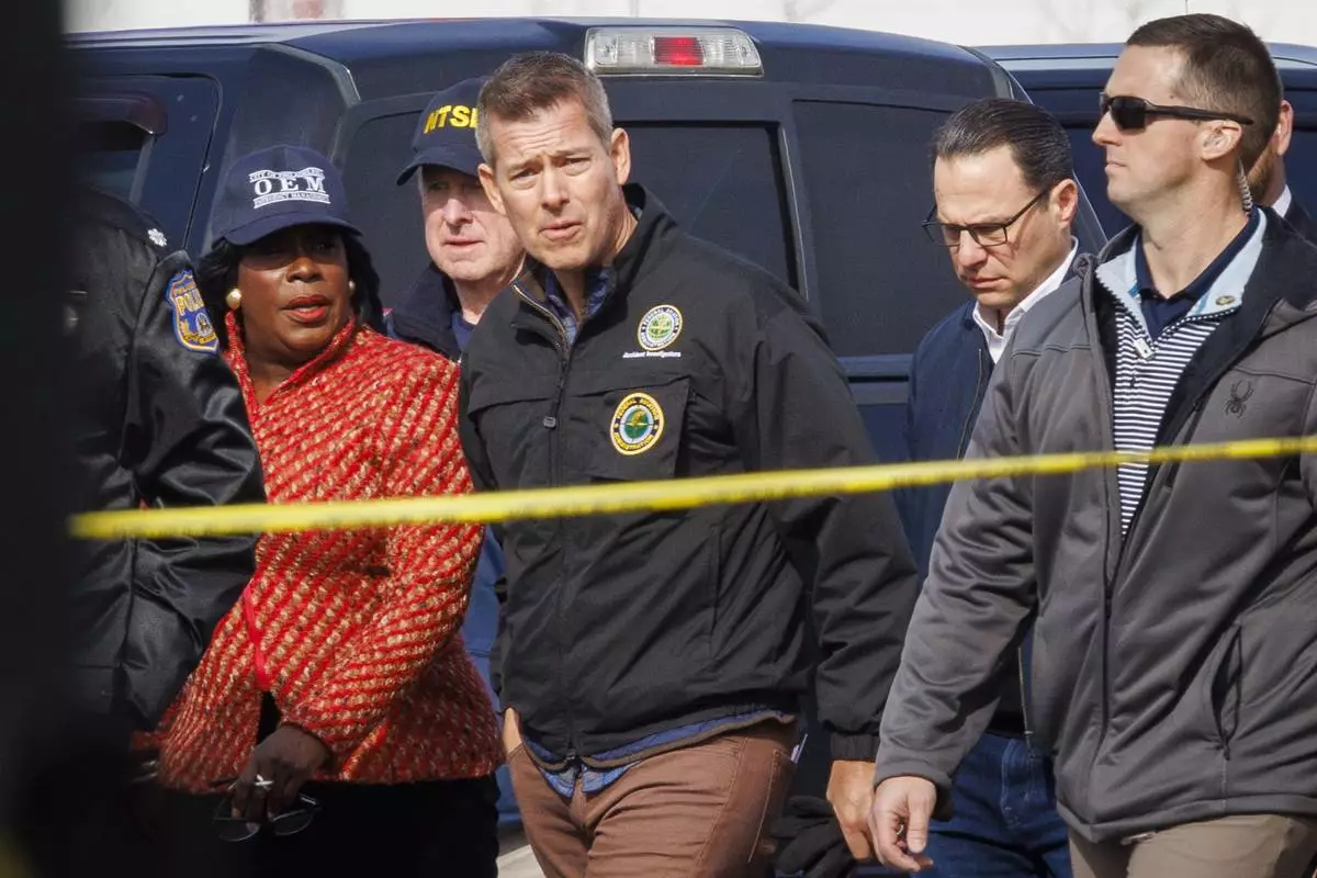 PHILADELPHIA (AP) — The impact area where a medical transportation plane crashed in Philadelphia was notably “expansive,” U.S. Transportation Secretary Sean Duffy said Monday after viewing the site with investigators and city officials.