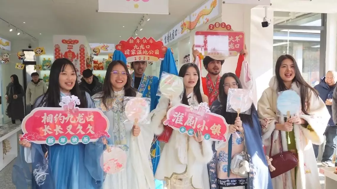 International students and foreign visitors engaged in hands-on activities such as making lacquer fans and taking traditional rowboats. "I'm a student from Uzbekistan studying in China, and I've been in China for five years. I've made many good Chinese friends. Today, I am joining my Chinese friends in celebrating the Chinese New Year holiday in Jiulongkou. Happy New Year, may you be prosperous and healthy every day!" said a student from Uzbekistan studying in China. "This is my first time spending the Spring Festival in China. I even tried making a Chinese fan today. I really like it. It's very lively here today. I love traditional Chinese culture. I would like to wish everyone a Happy New Year!" said a student from Thailand studying in China.