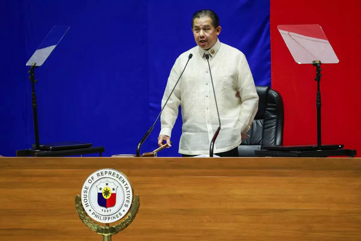 House Speaker Martin Romualdez hears the decision of members of Congress to impeach Vice President Sara Duterte at the House of Representatives in Quezon City in Manila, Philippines, Wednesday, Feb.5, 2025. (AP Photo/Gerard Carreon)