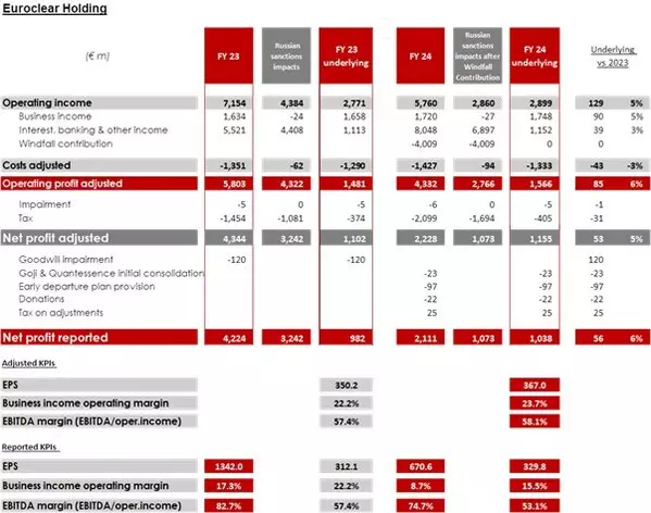 - Following the implementation of the EU windfall contribution regulation, Euroclear provisioned €4 billion as windfall contribution in 2024.