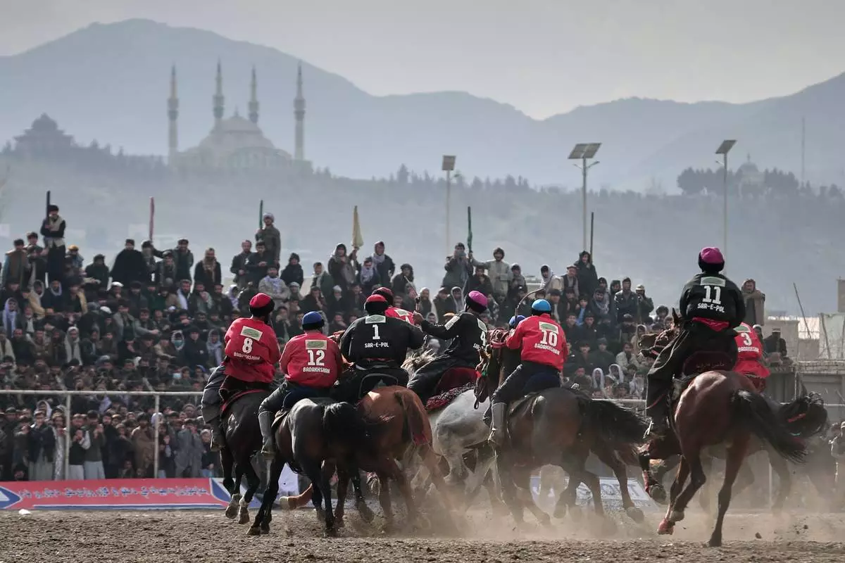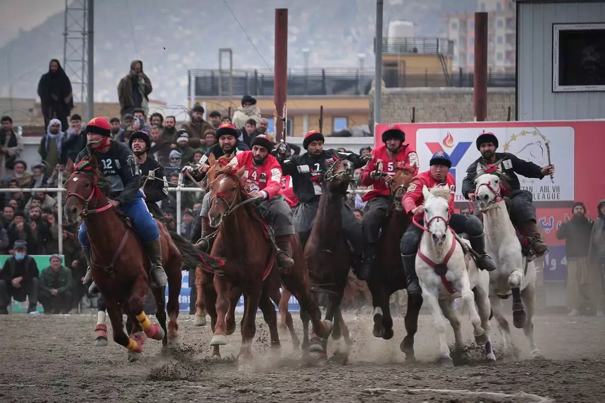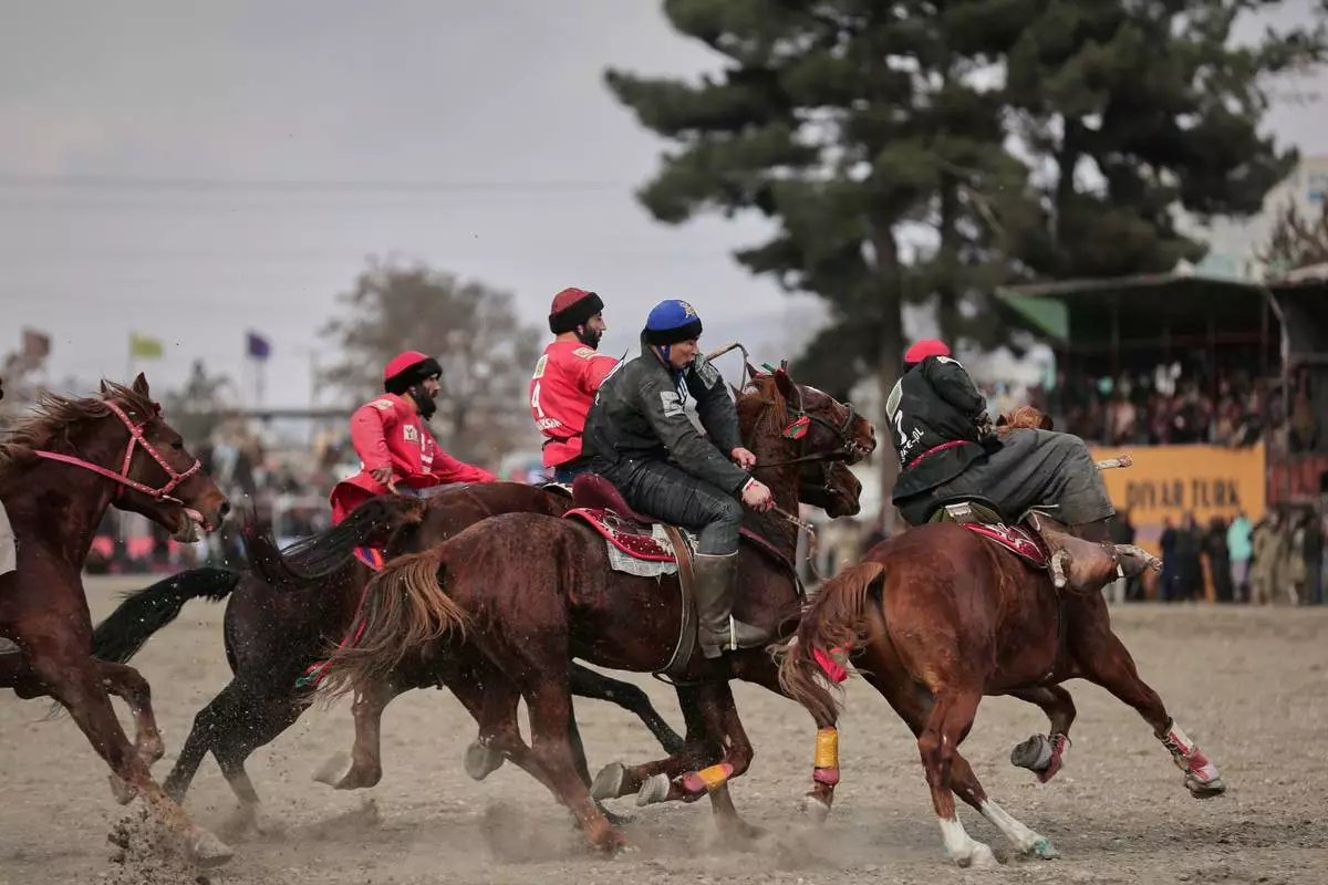 Buzkashi is a traditional equestrian sport in which riders score points by carrying a goat carcass — nowadays replaced by a fake goat carcass — across a goal.