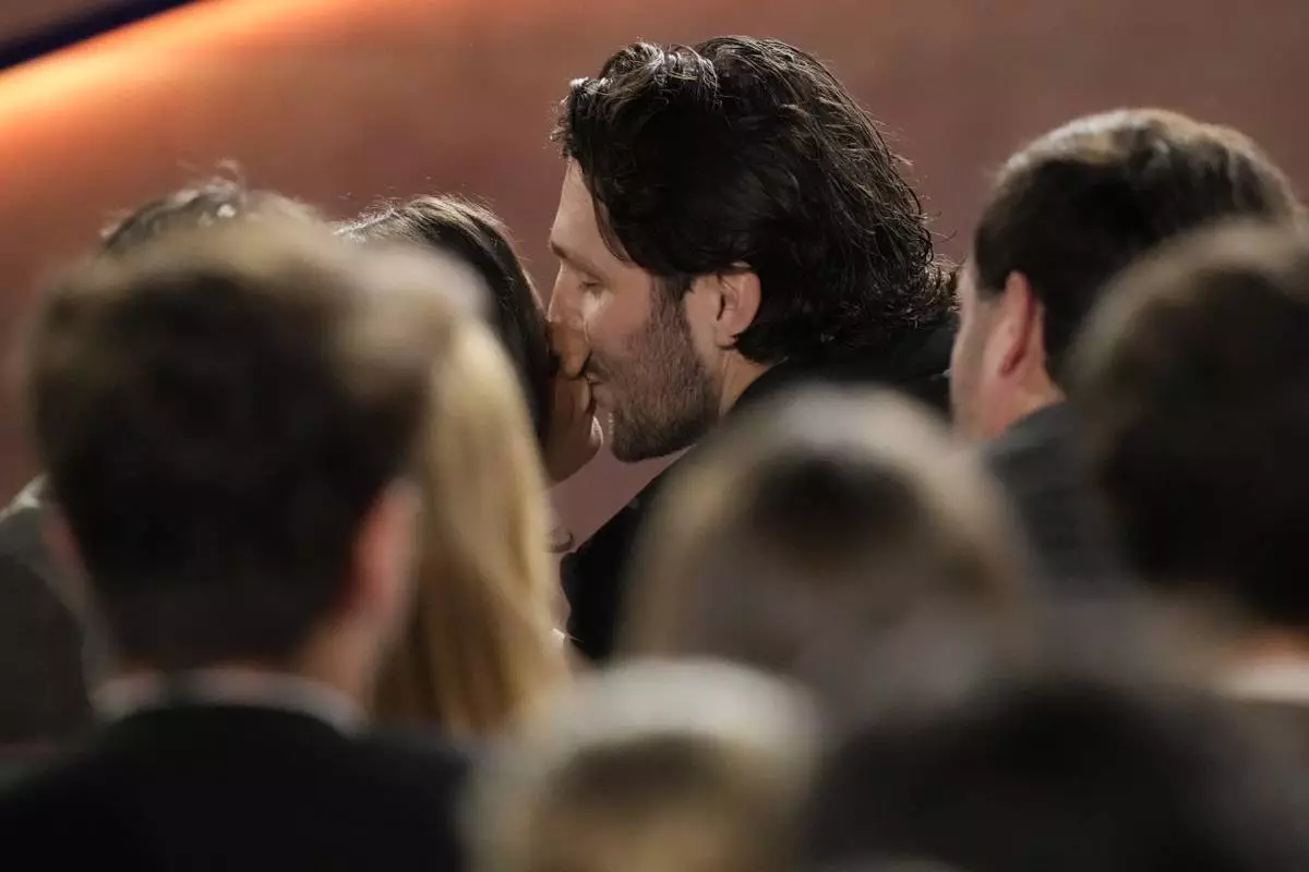 Buffalo Bills' Josh Allen kisses his fiancé Hailee Steinfeld during the NFL Honors award show ahead of the Super Bowl 59 football game, Thursday, Feb. 6, 2025, in New Orleans. (AP Photo/David J. Phillip)
